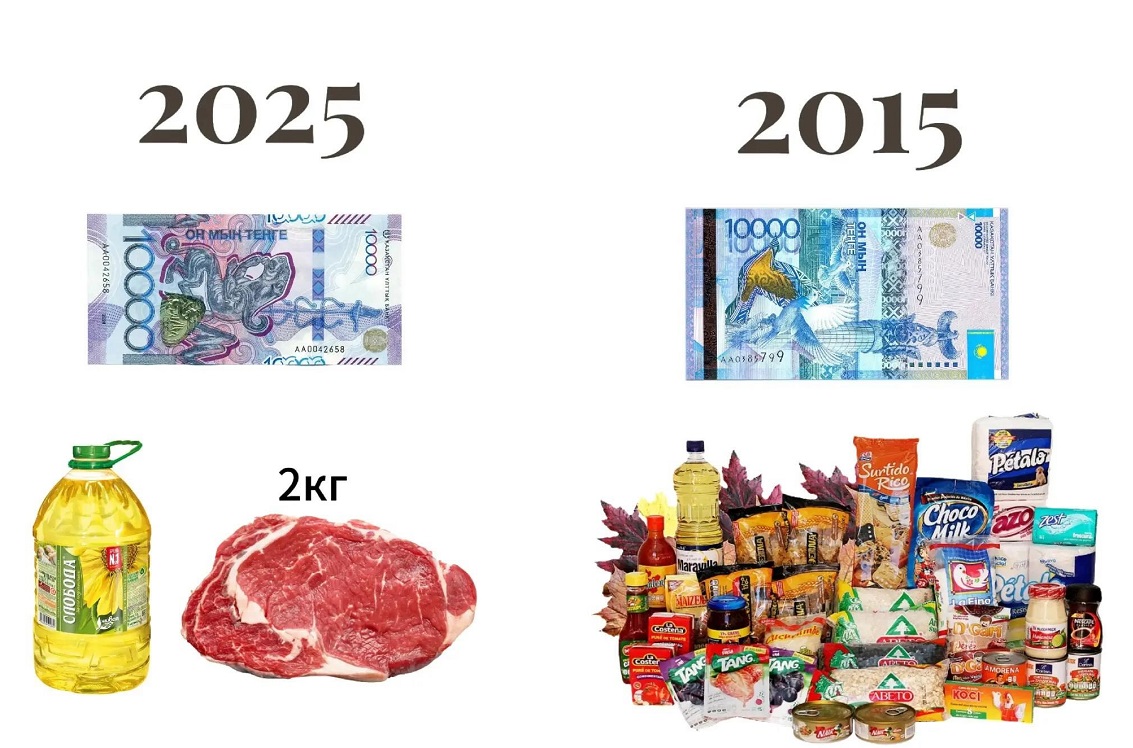 Казахстанцы сравнили, что можно купить на 10 тысяч тенге в 2015 и 2025 годах