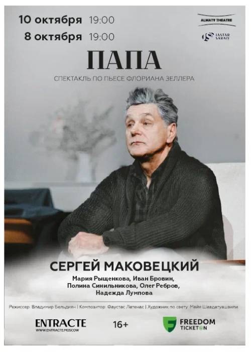 - 8 октября – спектакль «Папа» во дворце «Жастар»