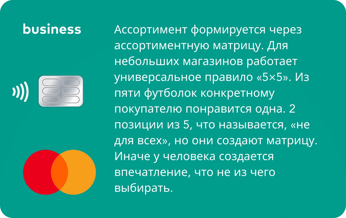 А чтобы увеличивать продажи, нужно сначала понять, при каких условиях магазин останется в плюсе. Для этого важно вести отчетность, оцифровать не только доходы, но и расходы. Когда бензин или канцелярию оплачиваете как физлицо, картина искажается: кажется, что расходов нет, но деньги утекают. Инструментов, чтобы не допустить этого, достаточно много. По своему опыту могу порекомендовать бизнес-карты Mastercard: можно проводить по ним каждую статью затрат, чтобы добавить ее в систему. Тогда вы будете понимать, что происходит с вашим делом и сможете принимать взвешенные решения.
