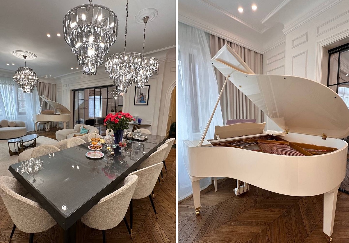 Белый рояль, люстры и камины: что внутри квартиры