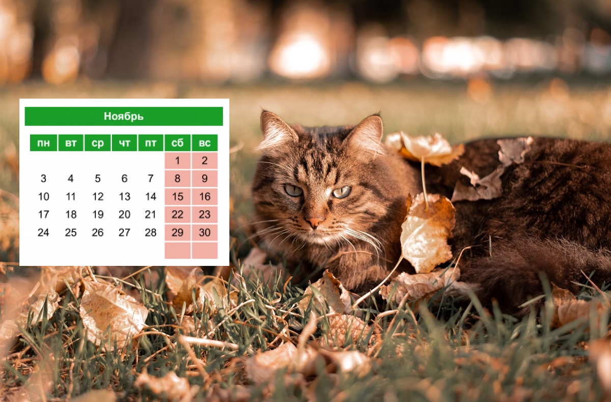 Первые выходные приходятся на 1-2 ноября, последние – на 29-30 число.