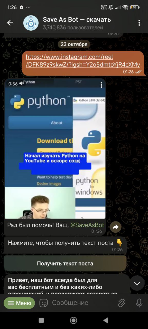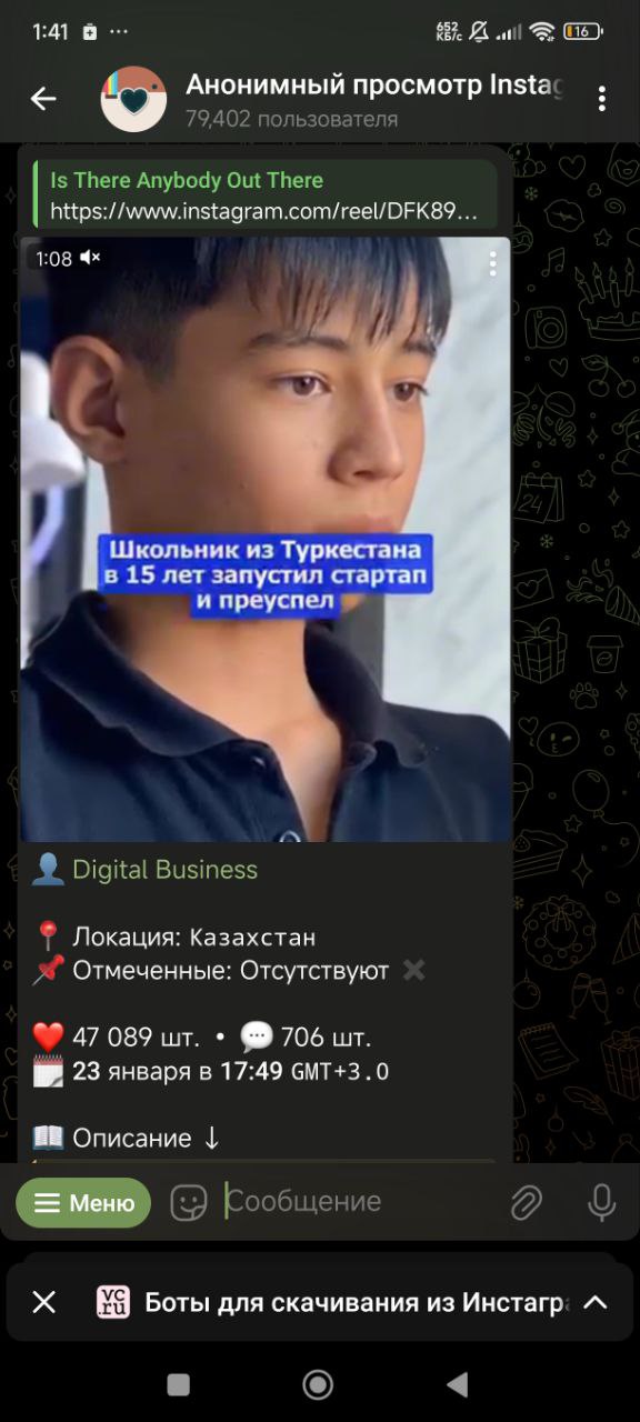 Как скачать видео из Instagram с помощью Telegram-ботов