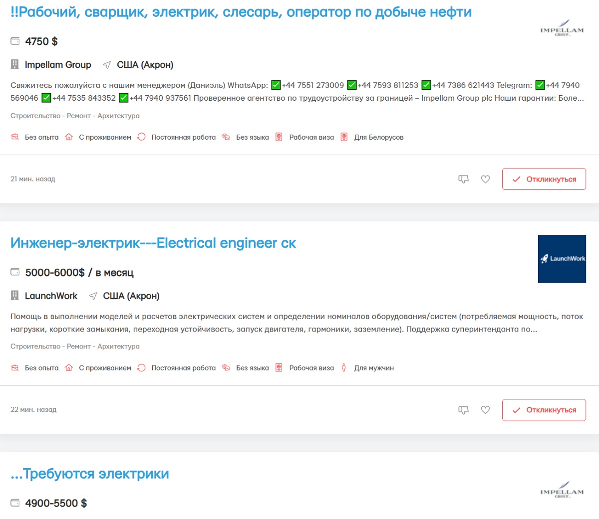 График – чаще всего 5 дней в неделю по 8 часов, с возможностью брать дополнительные смены. Некоторые работодатели предлагают вахтовый метод с отдыхом 30-45 дней после контракта.