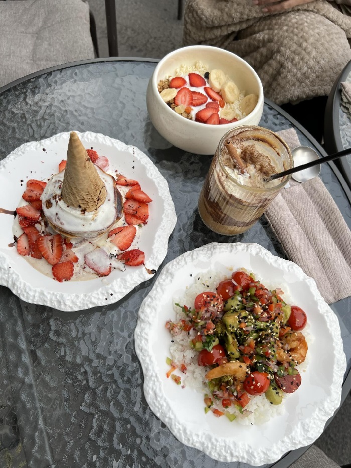 «Красивая кофейня в центре, комбо-завтраки за 2 990 тенге, бизнес-ланчи по 3 990 тенге. Еще акция: при заказе от 10 000 тенге – фирменный десерт «Барби сырники» в подарок», – пишут пользователи @revue.almaty.
