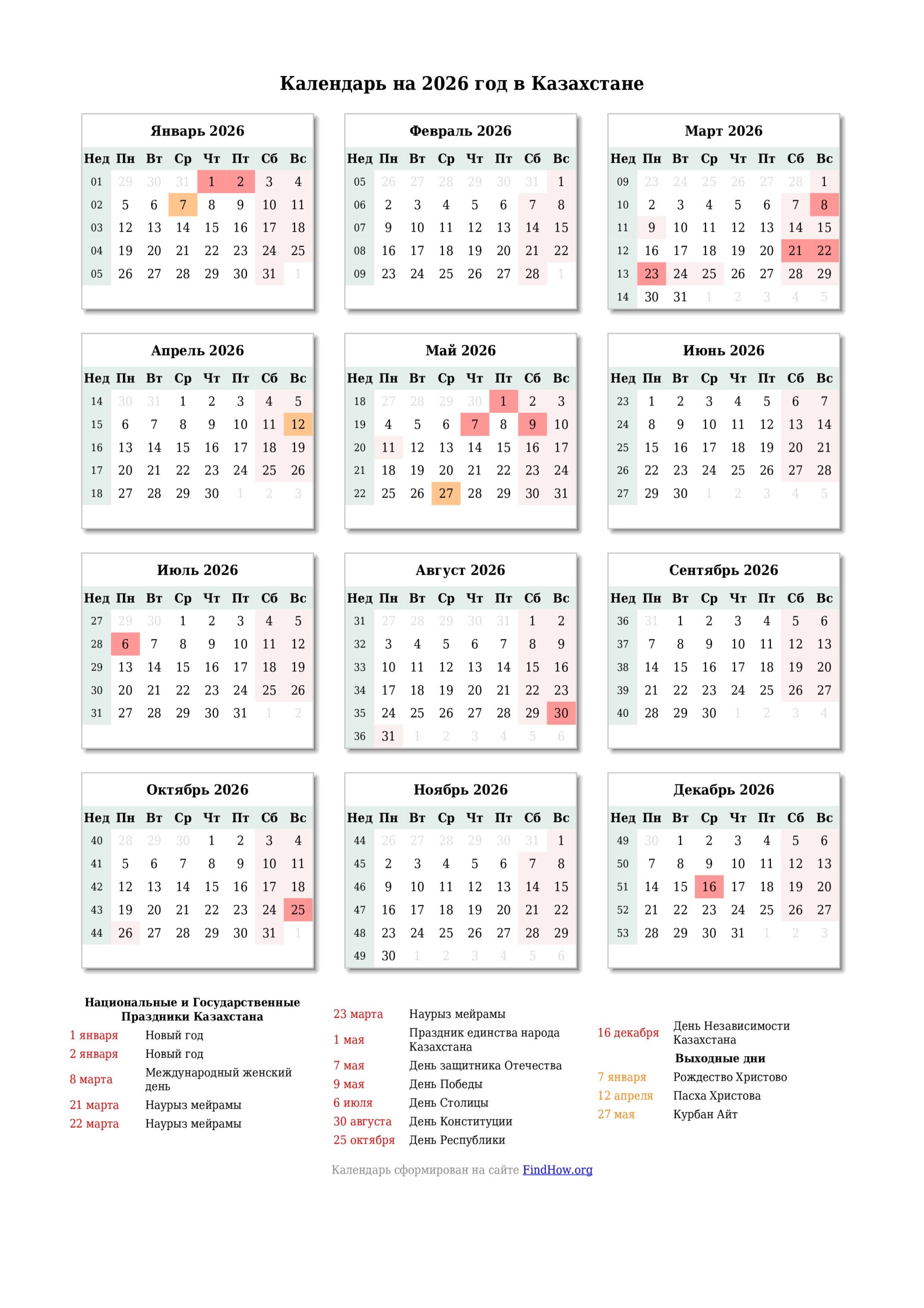 По данным сайта findh.org, 27 мая отмечен красным, то есть казахстанцы получат официальный выходной день.
