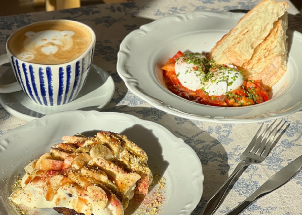 Завтрак за 3500 тенге: шакшука, банановый хлеб с муссом тирамису и кофе на выбор.