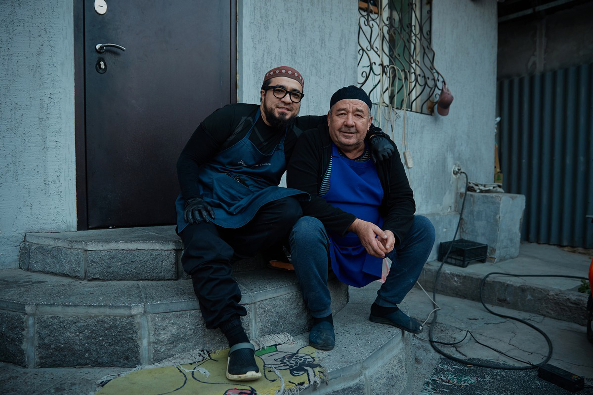 Мясо здесь — основа репутации. Ежедневно уходит 30–35 килограммов чистой мякоти. Курванжан берет только заднюю часть и ездит за ней лично к проверенным поставщикам в поселок Енбекши. Сын уговаривал перебраться в город, поближе к центру, но отец наотрез отказался.