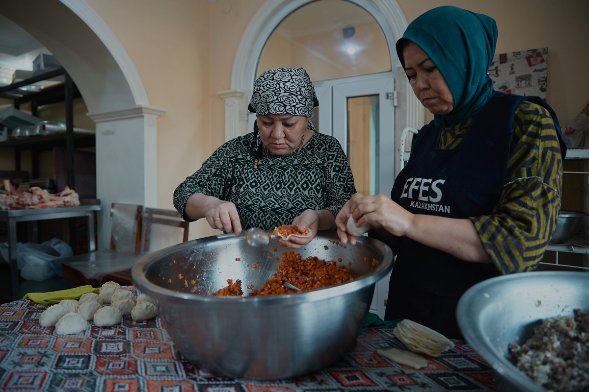 Каждый день в два часа ночи, когда Алматы спит, 59-летний Курванжан Асанов встает, чтобы замесить тесто, нарезать мясо, тыкву и лук. Через несколько часов свежие партии мант отправятся в магазины и офисы по всему городу.