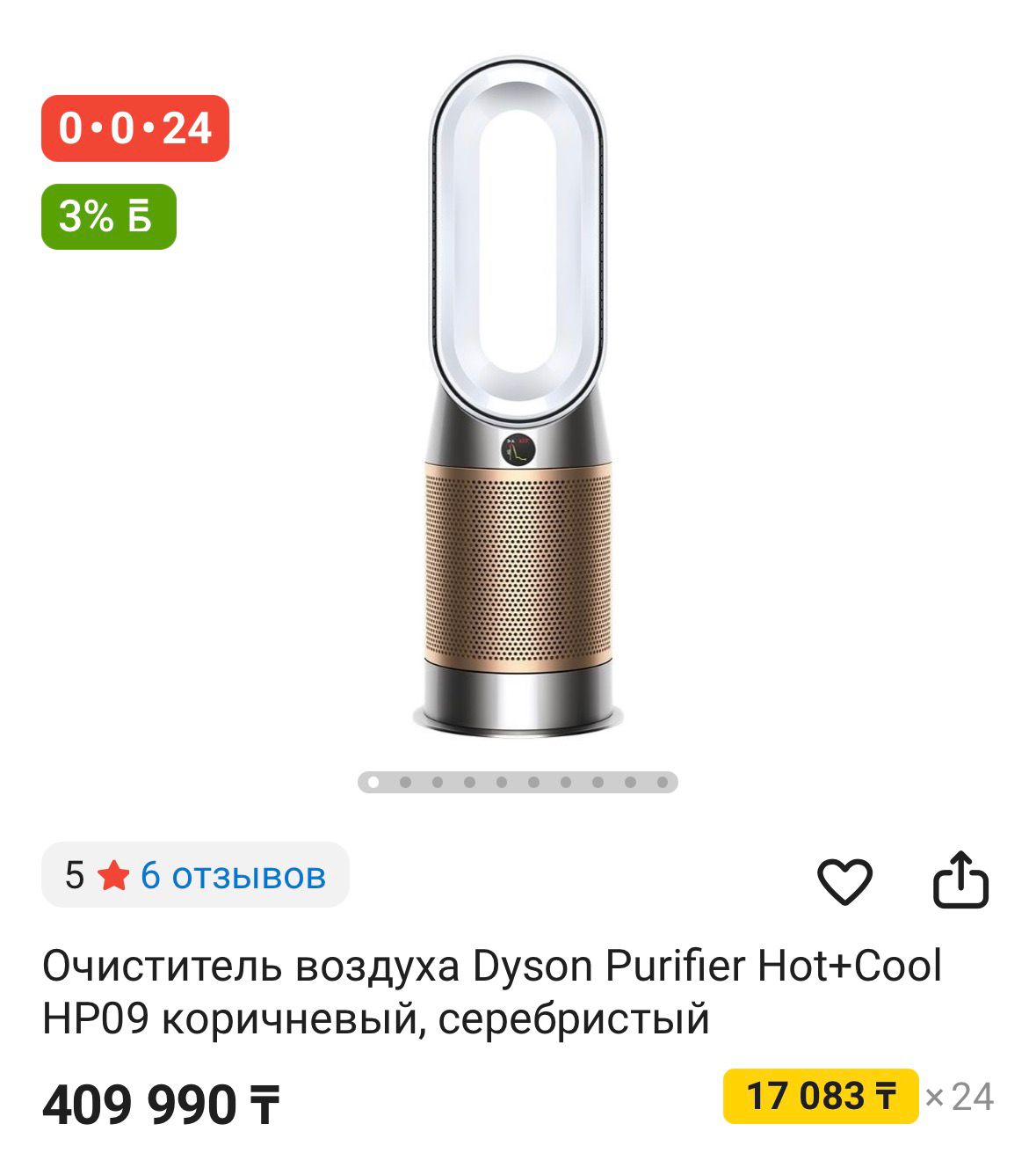 Модель Dyson Purifier Hot+Cool HP09 в варианте бронза/серебро, а на момент публикации ее цена составляет 409 990 тенге. Устройство рассчитано на обслуживание помещений площадью до 75 квадратных метров и позиционируется как ультразвуковой очиститель, обеспечивающий свежий воздух в доме.
