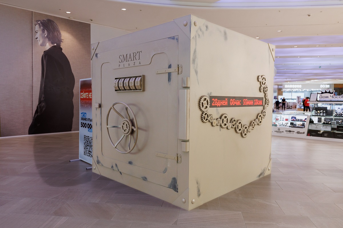 Запуск нового приложения сопровождался активной маркетинговой кампанией, ключевым элементом которой стал необычный ход. На главном входе ТРЦ Dostyk Plaza был установлен гигантский сейф, а в Shymkent Plaza кейсы, которые нужно было «взломать» через новое приложение Smart Plaza. Победителей ждал приз — шопинг на общую сумму 1 000 000 тенге.