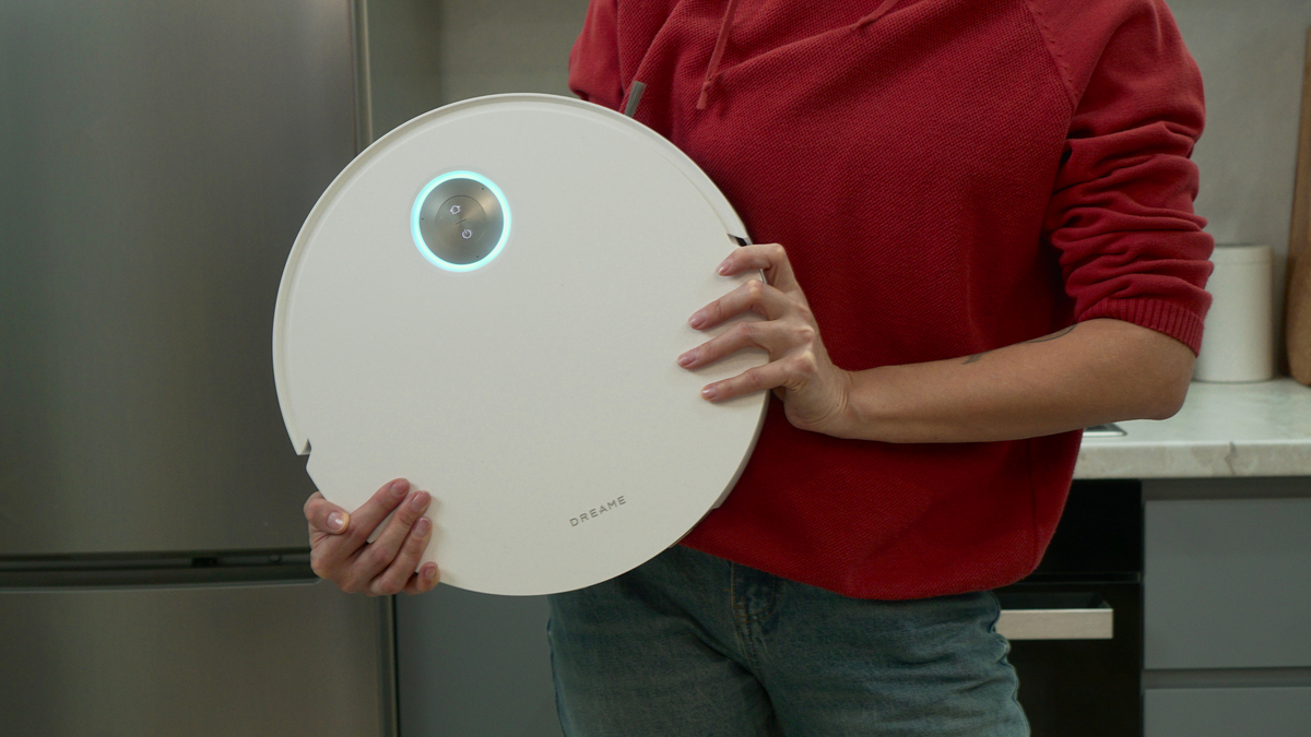 Диаметр пылесоса 350 мм – как у большой пиццы. В высоту робот достигает 120 мм, когда поднят лидар. Именно он отвечает за определение расстояния до объектов и построение 3-D карт. Когда гаджет заезжает под мебель, лидар автоматически опускается, а «рост» уменьшается до 97,5 мм. При недостатке света робот включает фонарик.