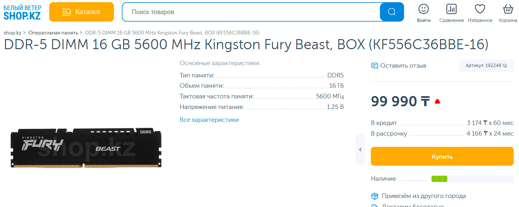 «Выше - весьма простые решения. Если хотите больше - просто начинайте смотреть цены на свежие комплектующие посерьезнее. Замените хотя бы ОЗУ на DDR-5 DIMM 16 GB 5600 MHz Kingston Fury Beast, BOX (KF556C36BBE-16) - хорошая плашка с большой герцовкой. В нашем расчете выше у нас простенькая на 3200 - та что ниже - уже 5600 MHz. Сегодня за такое решение вы платите 99 тысяч в рознице за штуку - некоторые магазины даже честно помечают рост цен красной стрелкой», - подсвечивает Станислав.