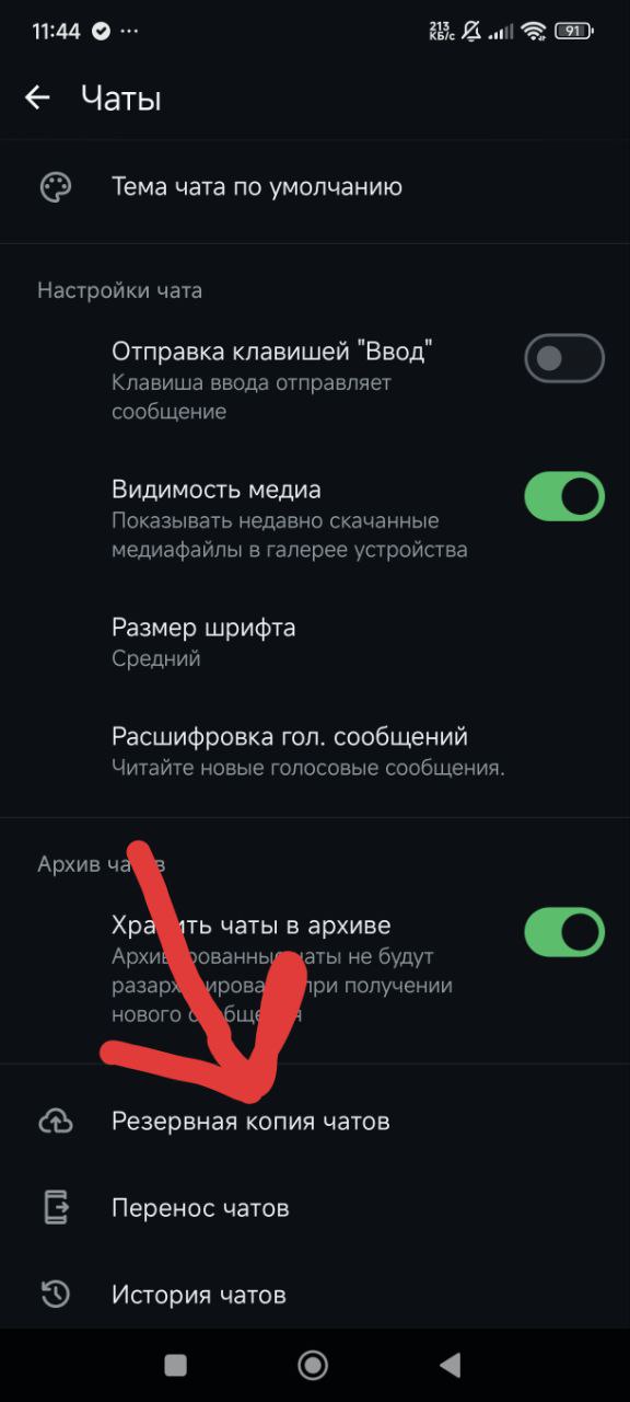 Чтобы создать резервную копию чатов в аккаунте iCloud: