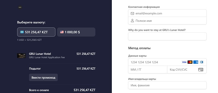 На сайте GRU Space указано, что потенциальные гости могут оставить депозит: