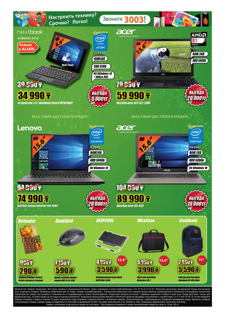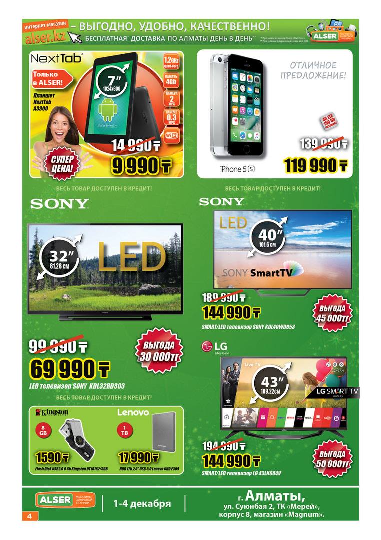 В нашем распоряжении оказалась брошюра магазина Alser, выпущенная в день открытия филиала в 2016 году в Алматы, в ТК «Мерей» на Суюнбая. В ней - розничные цены на технику, которая на тот момент считалась актуальной.
