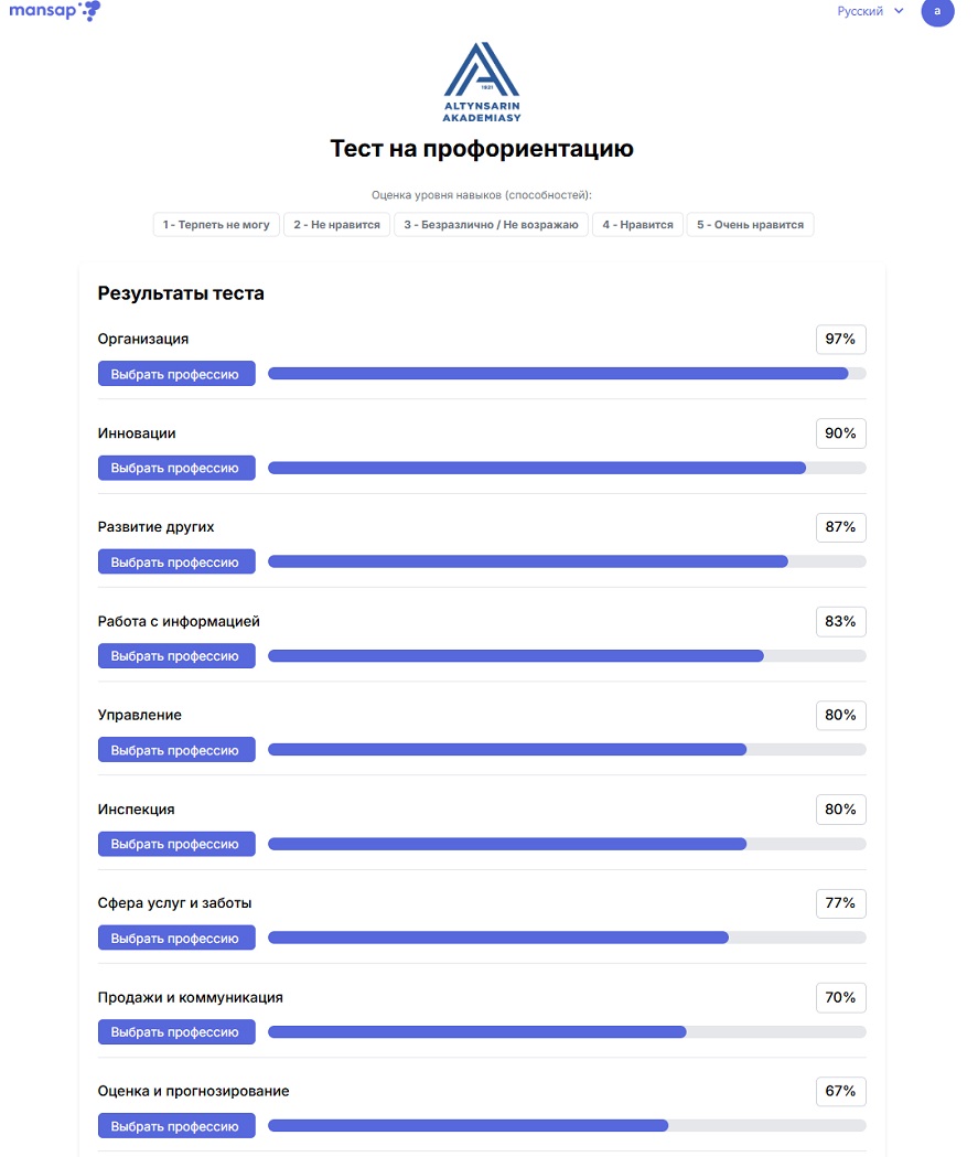 По словам управляющего директора Центра развития трудовых ресурсов Ерната Жунусова, Mansap Kompasy помогает школьникам не просто «поиграться в тест», а начать осознанно планировать будущее.