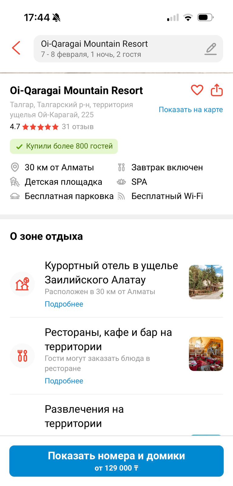 Поиск вариантов доступен по категориям, регионам и фотографиям, что упрощает выбор подходящего места. Оплатить услуги можно с помощью Kaspi Gold, Kaspi Бонусов, а также оформить рассрочку прямо во время покупки.