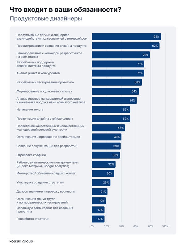 При этом 42% работодателей поощряют обучение продуктовых дизайнеров в рабочее время. Графические дизайнеры чаще организуют обучение самостоятельно.