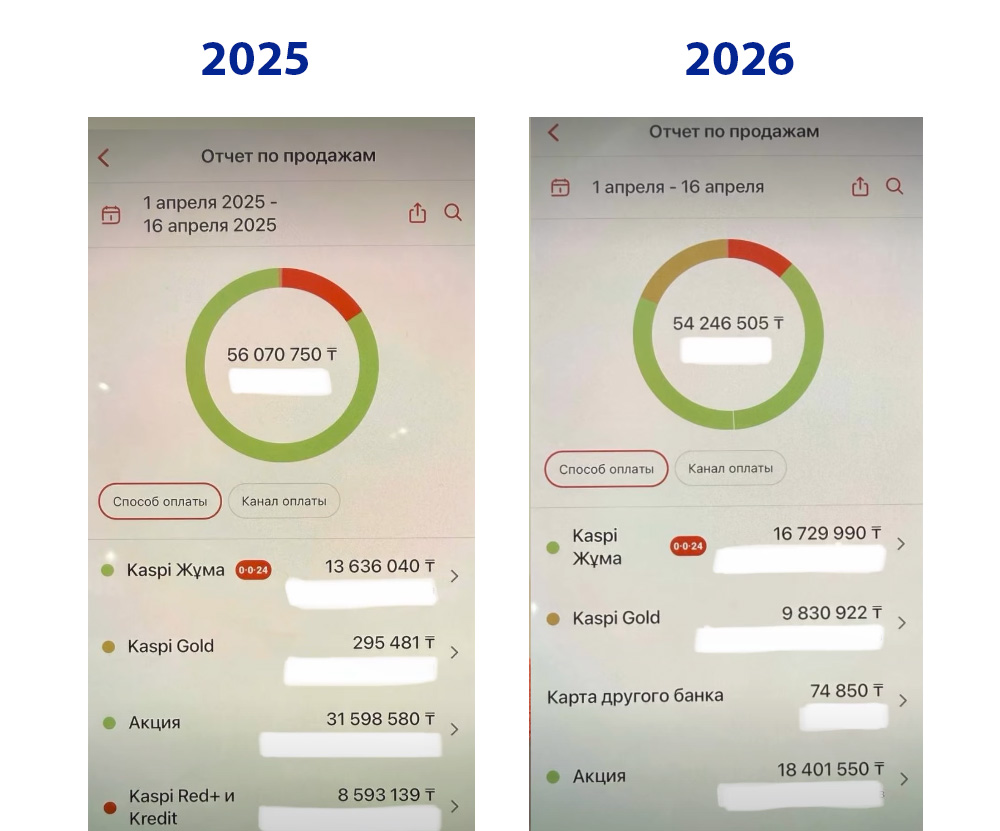 «Сейчас мы видим четкую картину: люди покупают товары за наличные через Kaspi Gold. В нашем E-commerce - конкретно на Kaspi Marketplace - мы начали делать анализ и заметили изменения еще в феврале-марте этого года. Доля покупок через Kaspi Gold выросла с 0,5 - 1% в прошлом году до 20% в текущем. Задумайтесь: показатель вырос в 20 раз. Людям все чаще приходят отказы, когда они пытаются оформить в рассрочку или кредит какие-то товары», - отмечает глава Hydra.kz