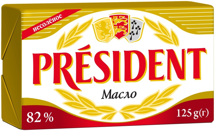 Масло сливочное President несоленое 82%, 125 г — 1 489 тенге